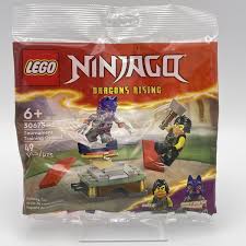 LEGO 30675 Tournament Training Ground was a 55 piece Ninjago set with 2 minifigs released in 2024. It features Cole with a katana sword and a Wolf Mask Warrior with claws, centered around a battle for a golden staff.